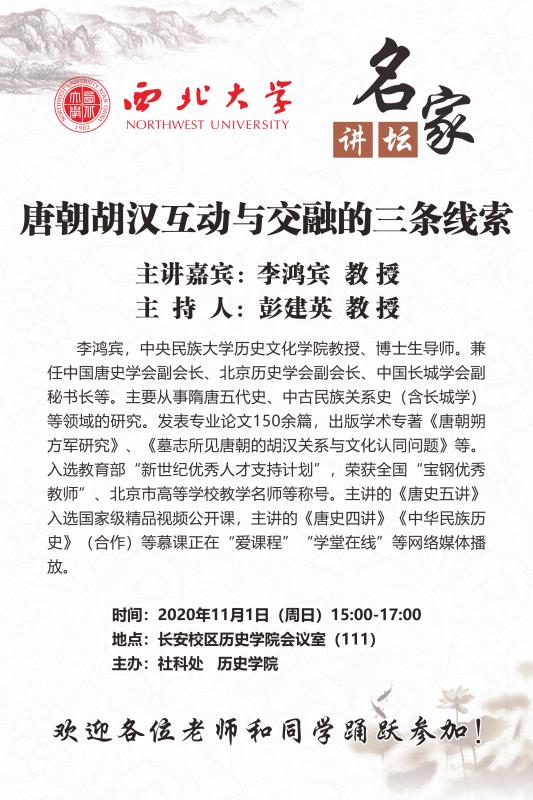 名家讲坛 中央民族大学历史文化学院李鸿宾教授《唐朝胡汉互动与交融的三条线索》