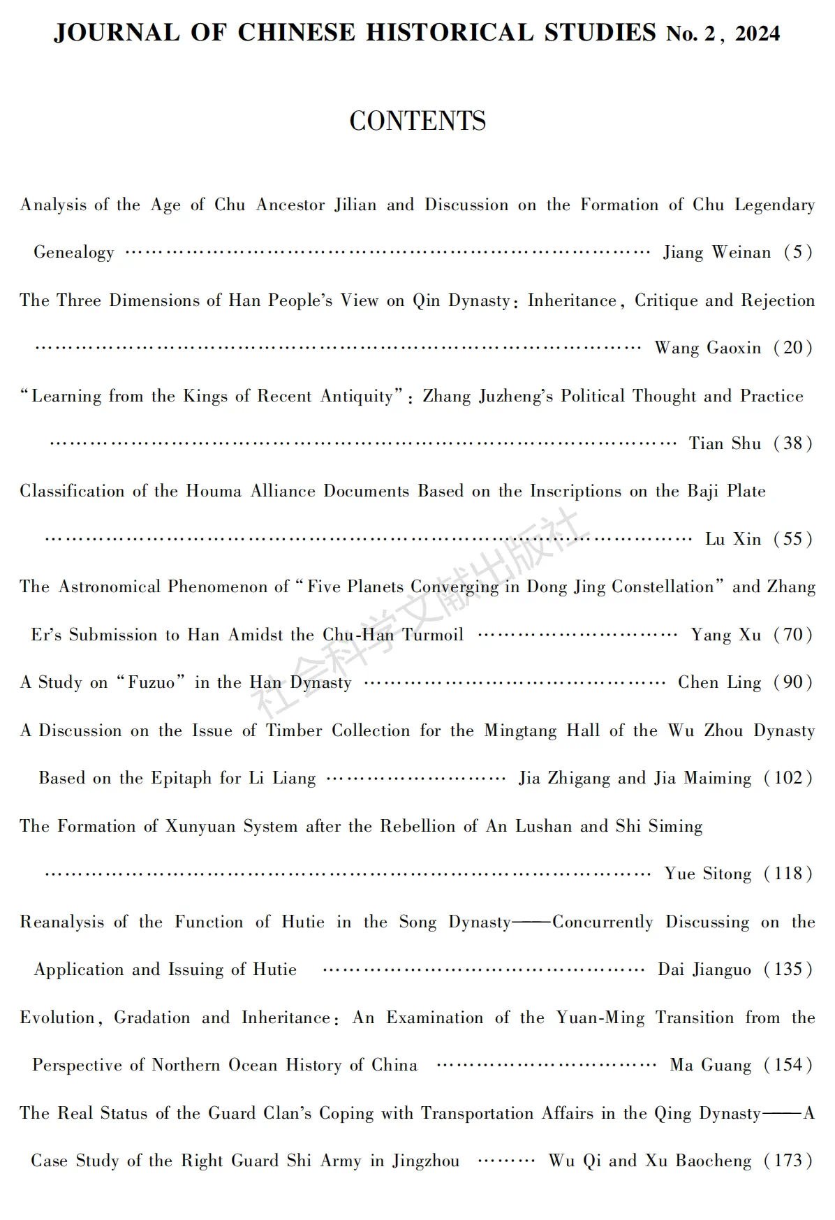 《中国史研究》是中国社会科学院主管、中国社会科学院古代史研究所主办的中国史领域的顶级期刊,创刊于1979年,注重学术的原创性和前沿性,注重新出资料的深度研究,注重重大历史问题的探讨。