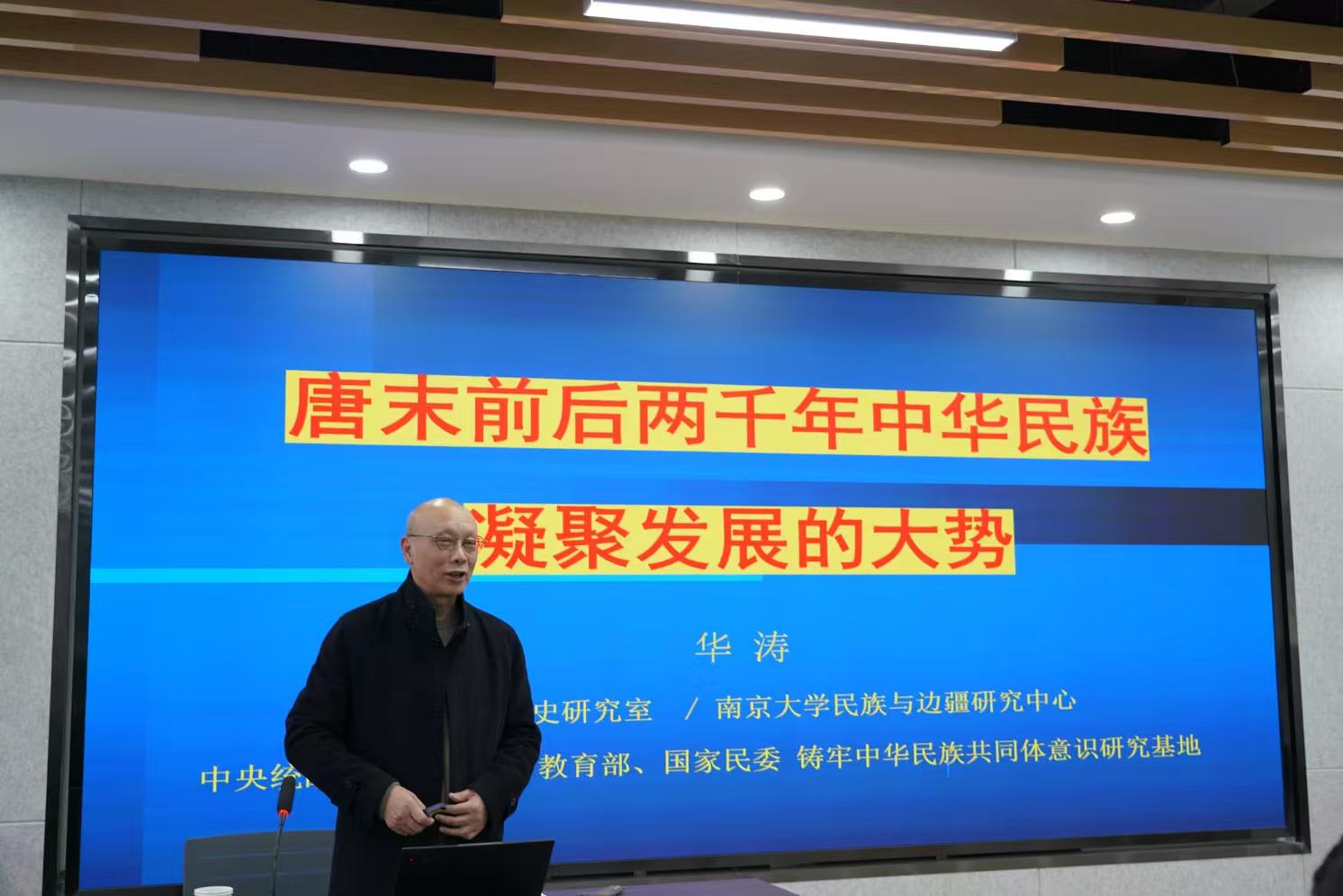 11月27日下午4时,南京大学中央四部委铸牢中华民族共同体意识基地首席专家、南京大学元史研究室/民族与边疆研究中心教授华涛先生做客我校“侯外庐学术讲座”第400讲暨中华民族史研究中心“马长寿学术讲座”第4讲,作题为“唐末前后两千年中华民族凝聚发展的大势”的学术讲座。中华民族史研究中心副主任彭建英教授主持讲座,校内外百余名师生聆听了华涛先生的精彩报告。