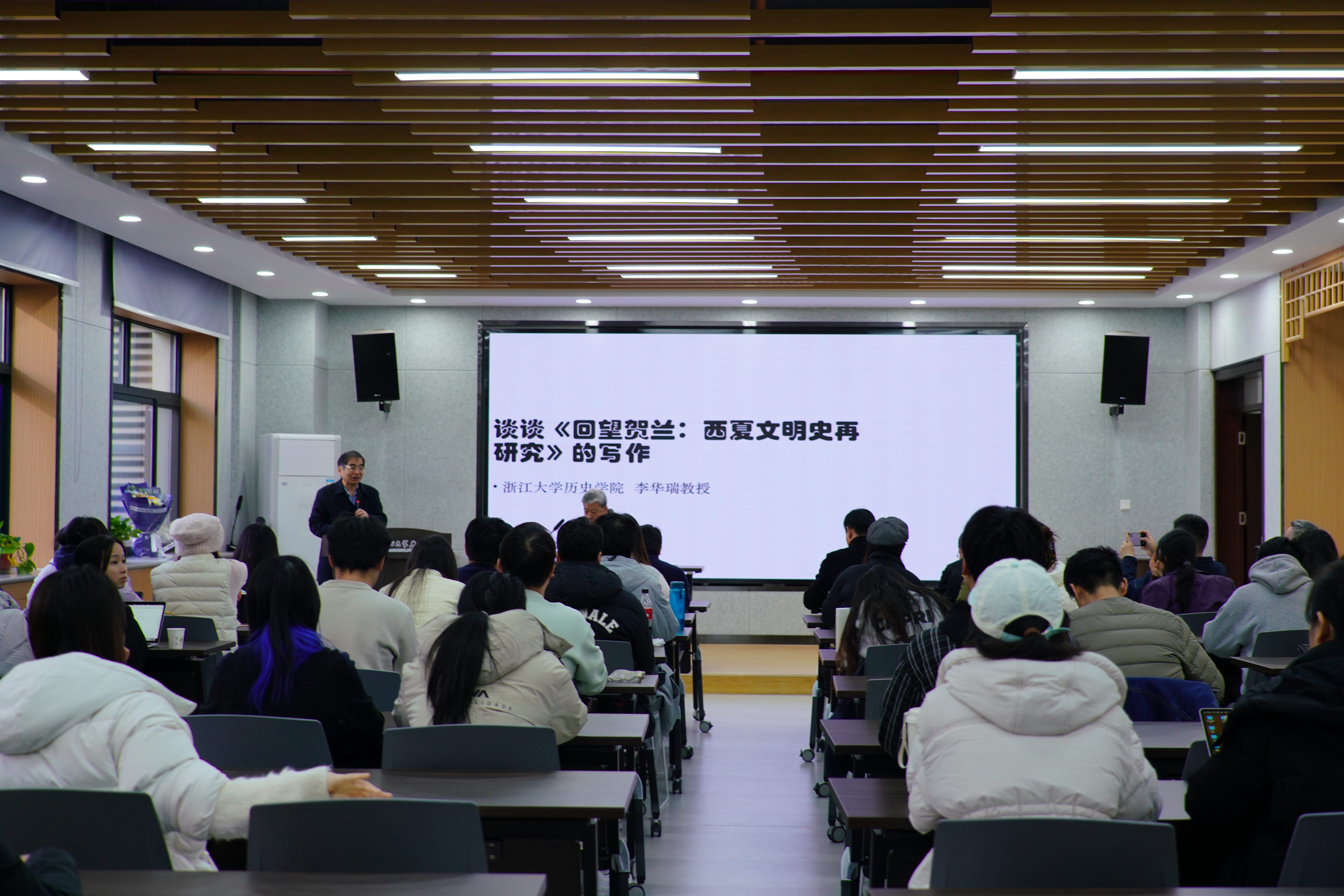 2025年11月20日,浙江大学敦和讲席教授、中国宋史研究会会长李华瑞先生做客我校“侯外庐学术讲座”第476讲,为师生们带来了《谈谈<回望贺兰:西夏文明史再研究>的写作》的学术讲座,历史学院王善军教授担任主持,校内外百余名师生聆听报告。