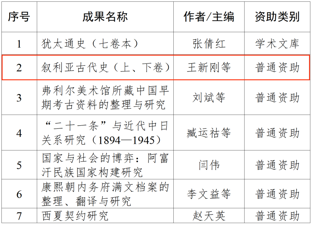 近日,经多轮专家评审,中国历史研究院院务会议审议通过了2025年度中国历史研究院学术出版资助项目,我院王新刚教授申报的“叙利亚古代史(上、下卷)”成功获批资助。