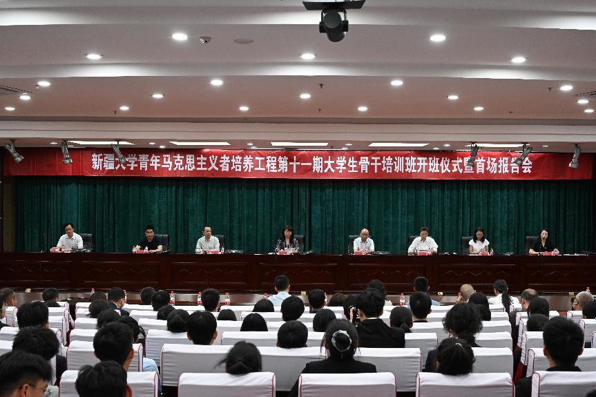 6月7日下午,新疆大学青年马克思主义者培养学院第十一期大学生骨干培训班开班仪式在红湖校区图书馆举行。大学党委副书记孟凡丽参加开班仪式并作首场报告。青年马克思主义者培养学院成员单位负责人、各学院党委副书记和第十一期青马班全体学员共计300余名师生参加开班仪式。校团委书记李冰雪主持开班仪式。