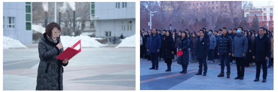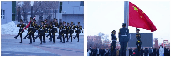 国旗飘扬,国歌嘹亮。上午9点整,升旗仪式正式开始。在清晨第一缕阳光映照下,英姿飒爽的国旗护卫队迈着铿锵步伐护送国旗庄严地走向升旗台。在雄壮的国歌声中,旗手奋力挥臂将国旗展向天空,鲜艳的五星红旗冉冉升起,迎风飘扬。全体师生整齐列队,向国旗行注目礼,用真挚的感情为祖国、为学校献上新春美好祝福,共同祝愿伟大的祖国繁荣昌盛,祝愿百年新大更加璀璨辉煌,祝愿全体新大人身体健康、工作顺利、学业进步、龙年吉祥。