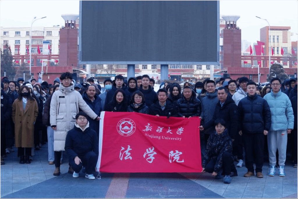 龙腾辞旧岁,奋发启新程。2月26日上午,新疆大学法学院在红湖校区举行庄严隆重的新学期第一周升国旗仪式,进一步激励广大师生铆足干劲、踔厉奋发,向百年校庆献礼。法学院党委书记张建江出席仪式并发表国旗下的演讲。学院全体领导班子成员、辅导员、班主任及2022、2023级全体学生参加升旗仪式。