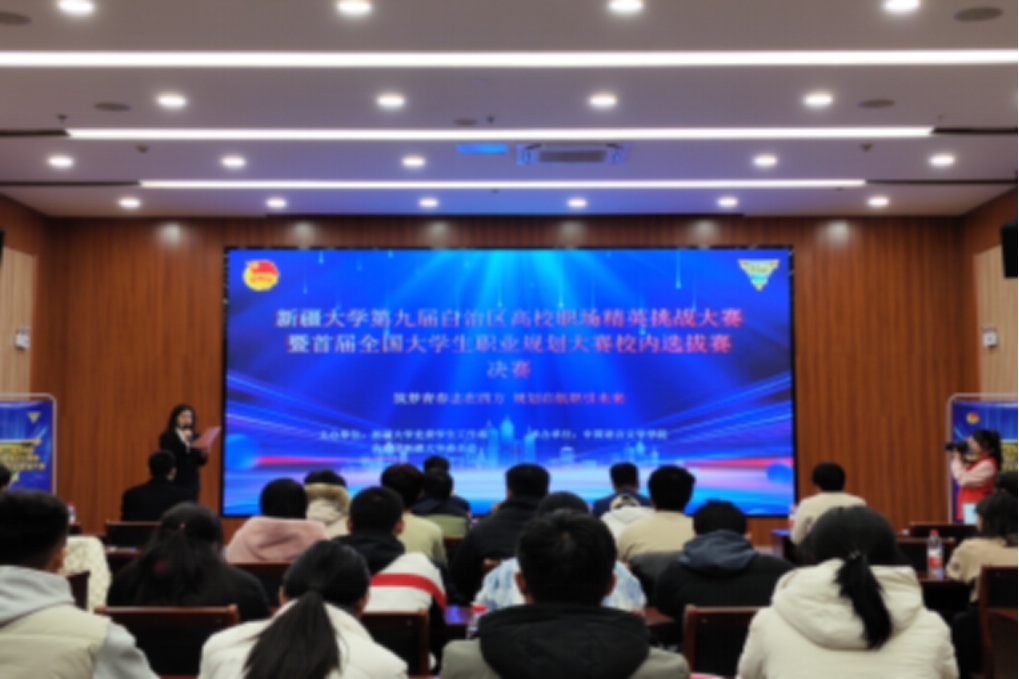 11月18日下午,新疆大学第九届自治区高校职场精英挑战大赛暨首届全国大学生职业规划大赛校内选拔赛决赛在红湖校区图书馆二楼学术报告厅成功举办。本次活动由新疆大学党委学生工作部、共青团新疆大学委员会联合主办,中国语言文学学院承办。