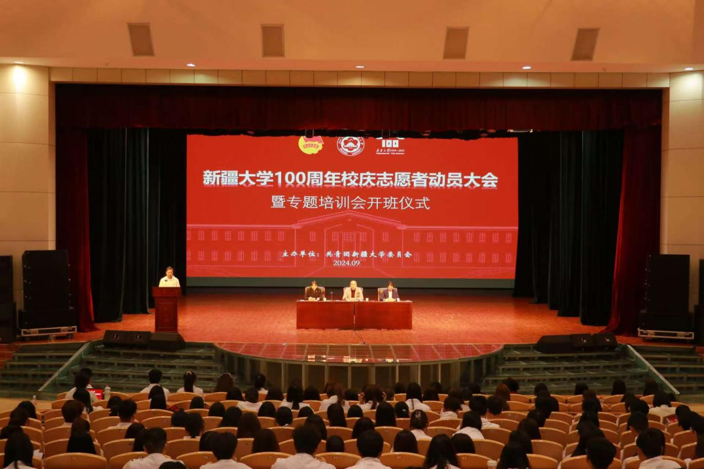 9月16日,新疆大学100周年校庆志愿者动员大会暨专题培训会在红湖校区大学生活动中心举行。校党委常委、副校长晋刚作动员讲话。党委学生工作部、校团委、研究生院等有关部门负责人及500余名校庆志愿者参加了仪式。