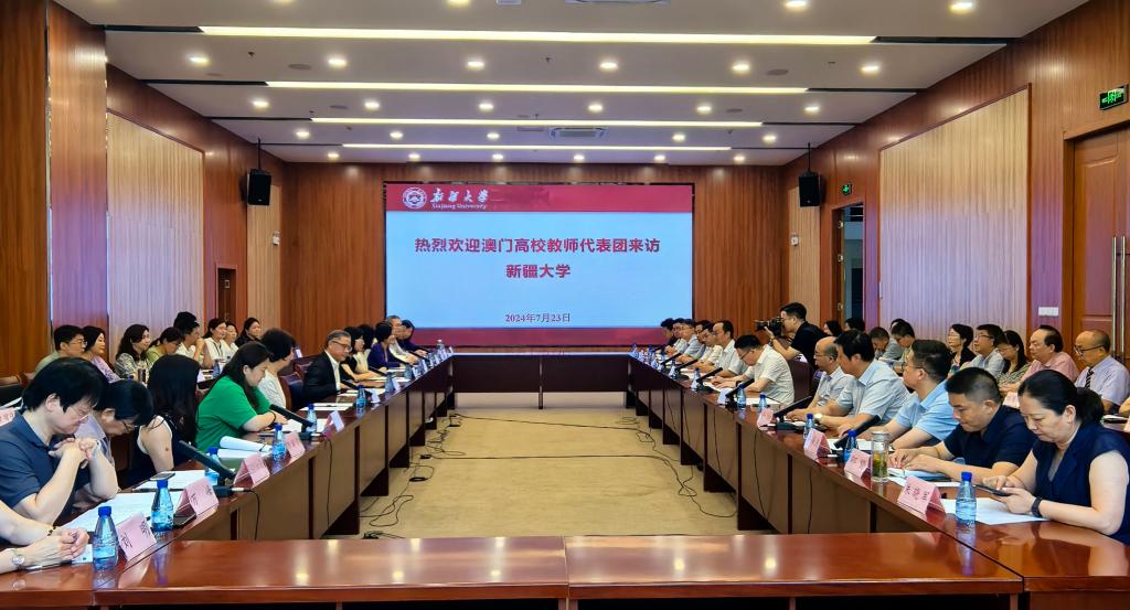 7月23日上午,澳门高校教师代表团一行29人来访新疆大学。澳门高等教育发展促进会会长、澳门大学副校长莫启明,新疆大学党委常委、副校长粟智出席座谈会。座谈会由新疆大学国际交流与合作处处长、港澳台事务办公室主任朱新武主持。