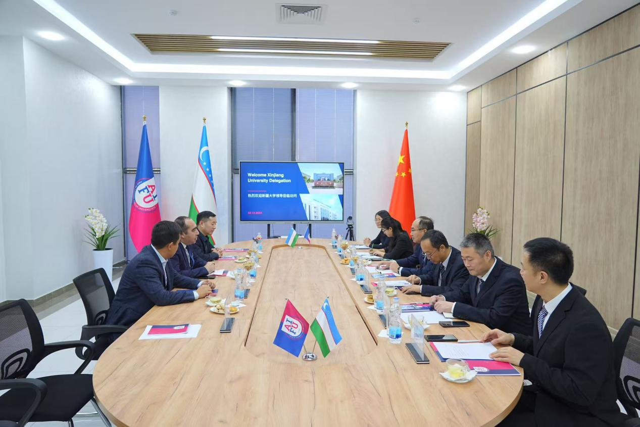 为落实共建“一带一路”倡议元首峰会达成的相关共识,主动服务国家对外开放大局,推动与乌兹别克斯坦相关高校的科教合作与人文交流,新疆大学党委常委、副校长晋刚于2024年12月21日至25日率团访问了乌兹别克斯坦塔什干国立技术大学、撒马尔罕国立大学、丝绸之路国际旅游与文化遗产大学、复兴教育大学、自然与社会科学大学等五所高校,就加强新疆大学与乌兹别克斯坦相关高校在人才培养、合作办学、师生互派、科研合作、师资培养等多领域的全方位合作进行了深入交流,本次出访取得丰硕成果。访问期间,晋刚一行还专程拜会了中国驻乌兹别克斯坦大使于骏。