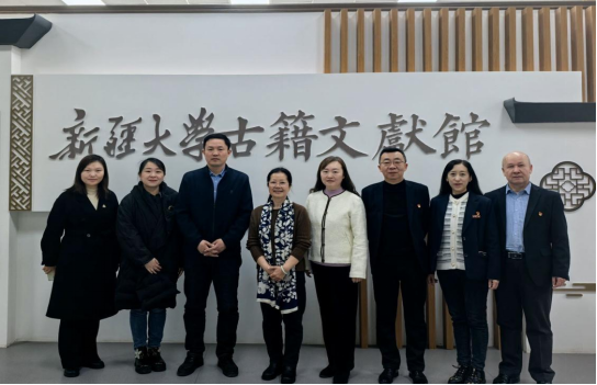 3月28日上午,吐鲁番学研究院信息中心汤士华研究员向新疆大学图书馆捐赠图书仪式在新疆大学图书馆古籍文献馆举行。图书馆馆长于海征、副馆长邵媛,古籍与特藏部、资源建设与研究部老师参加了捐赠仪式。