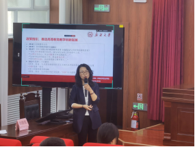廖媛媛老师结合自身的备赛及参赛经历,以“一步步走来,探索教学创新的无限可能——高校教师教学创新大赛心得交流”为主题,从赛制解读到如何进行课堂设计,从内容打磨到如何进行细节优化,分享的“实战秘籍”让与会人员受益匪浅。